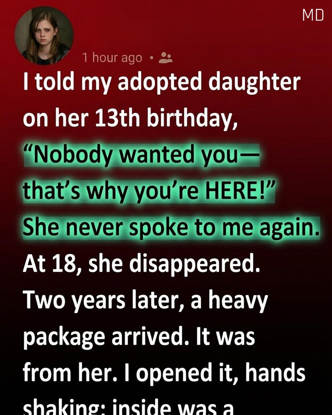 On her thirteenth birthday, the words left my mouth before wisdom could stop them. We had argued over something small — a slammed door, a broken vase, a pile of feelings neither of us knew how to name — and in one reckless moment I said something no parent should ever say. The room went silent. My daughter stood there with tears gathering in her eyes, not crying, not shouting, just staring at me as if a bridge had collapsed between us. From that day on, she became quiet in a way that frightened me more than anger ever could. She still lived in our home, still came to the dinner table, still did her schoolwork, but her laughter disappeared. I tried apologies in awkward pieces, little acts of kindness, favorite meals, birthday gifts, careful conversations outside her bedroom door. But some wounds do not answer right away. By the time she turned eighteen, she packed her bags, left a short note saying she needed to build a life of her own, and walked out into the world without looking back.