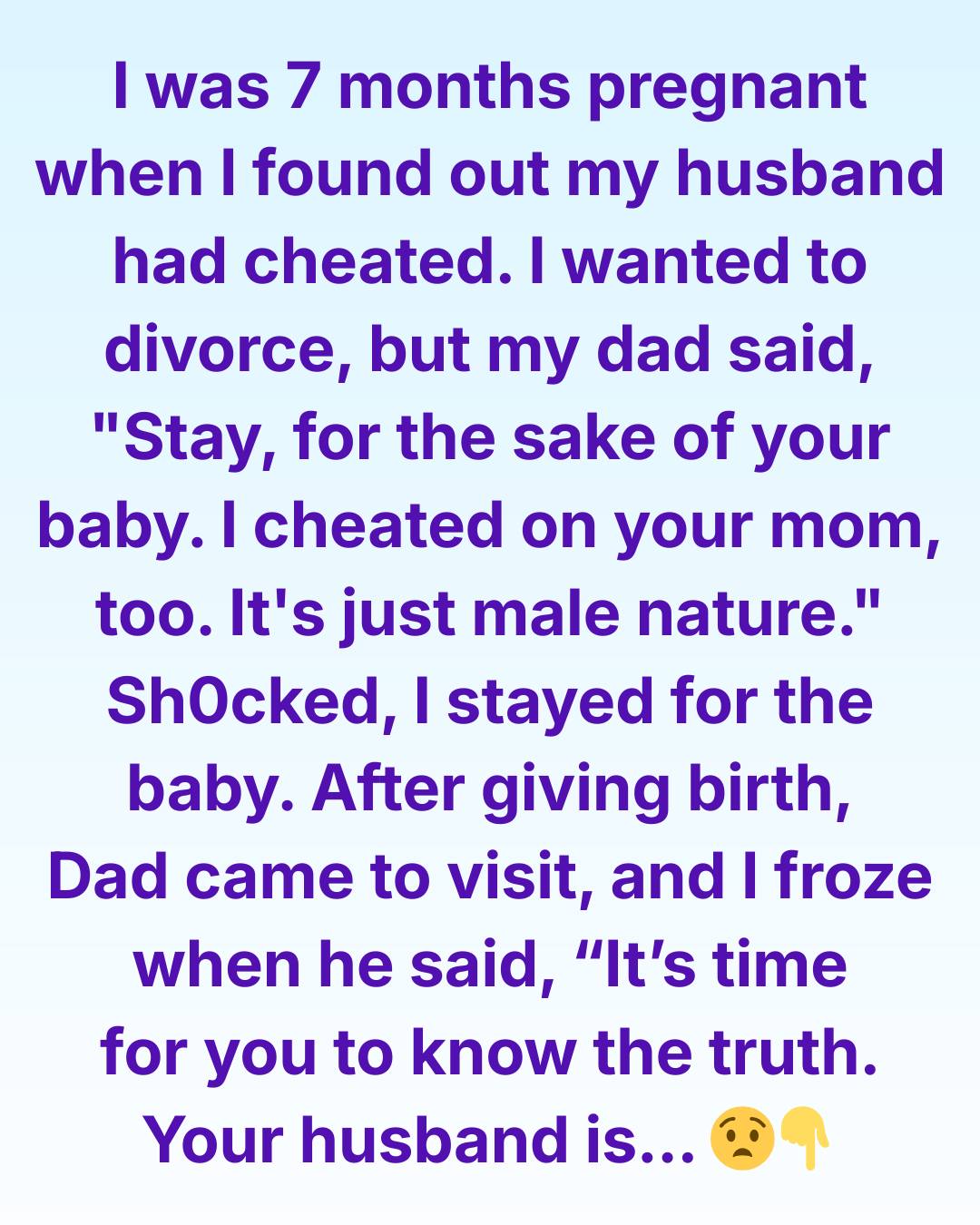 He pulled a chair closer and lowered his voice. What he said next shifted everything I thought I knew, not just about my marriage, but about my family. He explained that he had spoken to my husband, hoping to guide him, to urge him into responsibility before the baby arrived. But during that conversation, my husband revealed something I had never expected: he had been struggling quietly with stress, insecurity, and emotional turmoil about becoming a father. None of it excused his actions, but it painted a picture I hadn’t seen before. My father told me he wished he had been braver, more honest, and more supportive in his own marriage, and he didn’t want me to repeat his mistakes—either by staying for the wrong reasons or leaving without understanding the full picture. “Your husband is scared,” he finally finished. “And he’s trying to make amends. That’s the truth.”