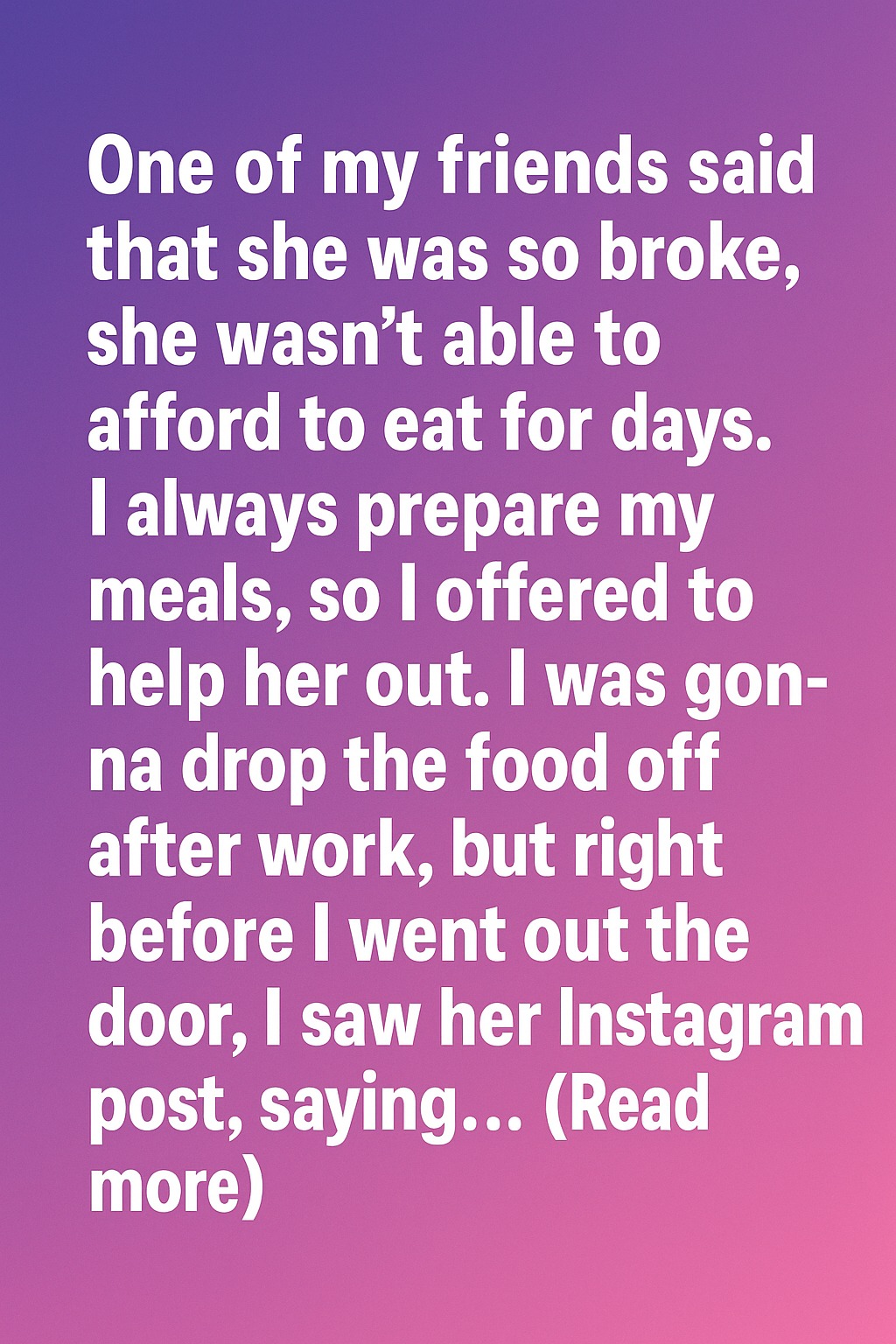 One of my friends said that she was so broke, she wasn’t able to afford to eat for days. I always prepare my meals, so I offered to bring her some after work. I packed everything carefully, hoping it would give her a little relief. But just before I walked out the door, I noticed her Instagram post. She was out with friends at a café, smiling over a dessert she said she couldn’t afford.