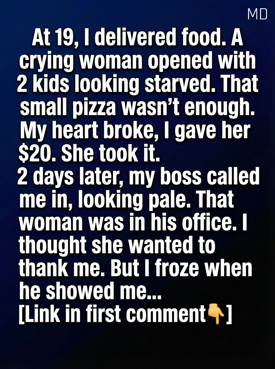 At nineteen, I spent most evenings weaving through quiet streets with a delivery bag slung over my shoulder, trying to earn enough to cover rent and keep my future moving forward. One rainy night, I knocked on the door of a small apartment at the end of a dim hallway. When it opened, I was met by a woman whose eyes were tired and overwhelmed. Two young children stood behind her, watching silently. The room carried a stillness that said more than words could. The small pizza I handed over didn’t feel like enough for what they needed. Without thinking too much about it, I reached into my pocket and gave her the only extra money I had that night—twenty dollars. She hesitated, then accepted it with quiet gratitude.