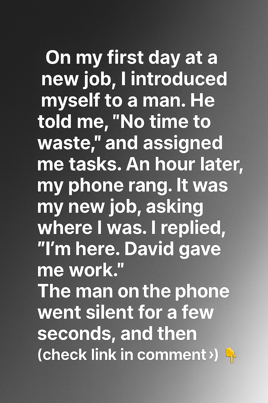 On my first day at a new job, I introduced myself to a man. He told me, “No time to waste,” and assigned me tasks. An hour later, my phone rang. It was my new job, asking where I was. I replied, “I’m here. David gave me work.” The man on the phone went silent for a few seconds, and then everything took an unexpected turn that would reshape the way I viewed workplaces forever.I had arrived that morning eager to prove myself, ready to leave behind a long stretch of unemployment that had worn down my confidence. The building buzzed with energy—phones ringing, footsteps echoing, and the low hum of people switching between conversations and keyboards. So when the man who greeted me looked busy, I assumed he was simply the direct, no-nonsense type. His speed impressed me. He handed me folders, briefed me in record time, and set me up at a desk. There was nothing about him that felt out of place. He seemed like someone who had authority, someone who knew what needed to be done. So I worked. I focused. I didn’t question it.