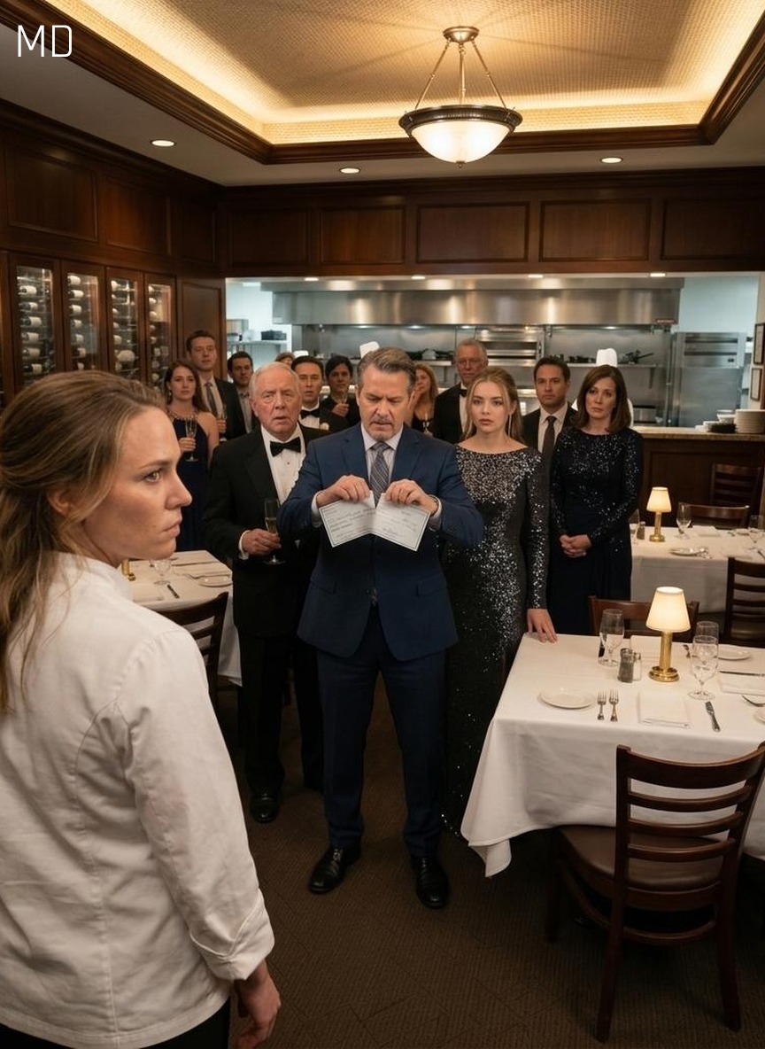 Claire Bennett had spent three years transforming her father’s failing steakhouse into a modern, acclaimed restaurant. She redesigned the menu, trained the staff, and poured her savings into perfecting every dish, yet when the investors arrived for the grand opening, her father placed her younger sister, Vanessa, in the spotlight. Claire stayed hidden in chef whites while her sister charmed the guests, taking credit for a vision she hadn’t created. Watching her seared halibut and brown butter carrots serve applause she hadn’t earned, Claire felt the familiar sting of being invisible. When her father whispered, “Don’t make this night about you,” something inside her quietly broke. She untied her apron, left the kitchen, and walked away, leaving the chaos—and the check—behind.