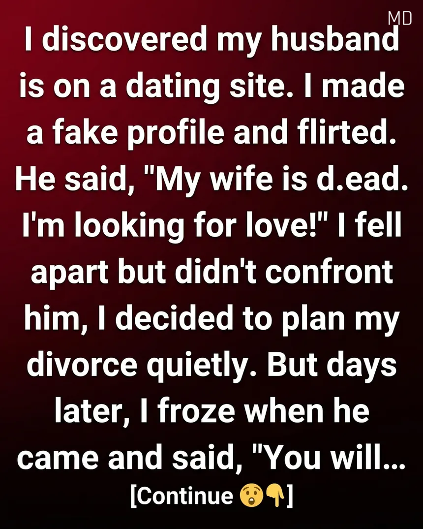 I never expected a quiet evening to unravel everything I believed about my marriage. It started with a strange feeling—nothing obvious, just a small instinct I couldn’t ignore. One night, out of curiosity more than suspicion, I searched his name online. That’s when I found it: a profile on a dating site. My heart sank, but instead of confronting him immediately, I created a simple account and reached out. What followed felt surreal. He responded quickly, confidently, like someone with nothing to hide. As the conversation unfolded, I asked about his life, and that’s when he said it—his wife was gone, and he was ready to find love again. Reading those words, I felt like the ground had disappeared beneath me.