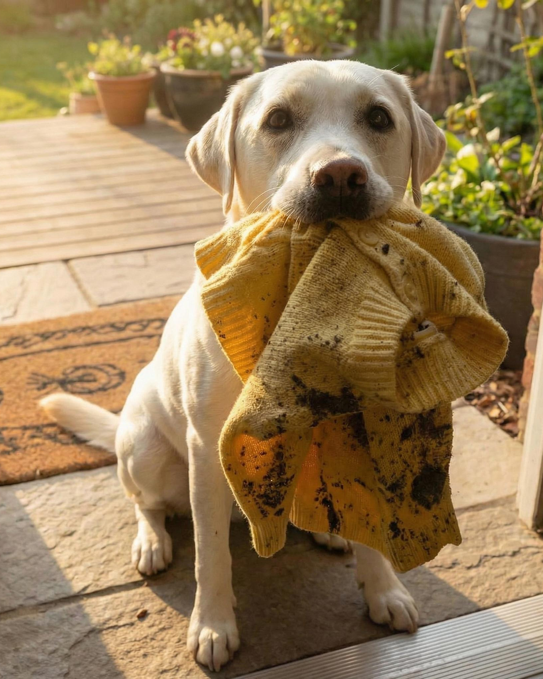 Baxter stood at the door with something soft and yellow in his mouth—one of Lily’s sweaters I thought had been taken by the police for evidence. Before I could process how he had found it, he ran through a small gap in the fence, glancing back to make sure I followed. He led me into the old, overgrown lot beside our house, a place I hadn’t stepped into in years. At the entrance of a neglected shed, he stopped and waited. Inside, in a quiet corner, I found a small nest made of familiar fabrics—Lily’s scarf, her old cardigan, and the extra yellow sweater I had forgotten she owned. Curled safely among them was a mother cat with three tiny kittens, warm and peaceful in the nest my daughter had lovingly made for them long before the accident.