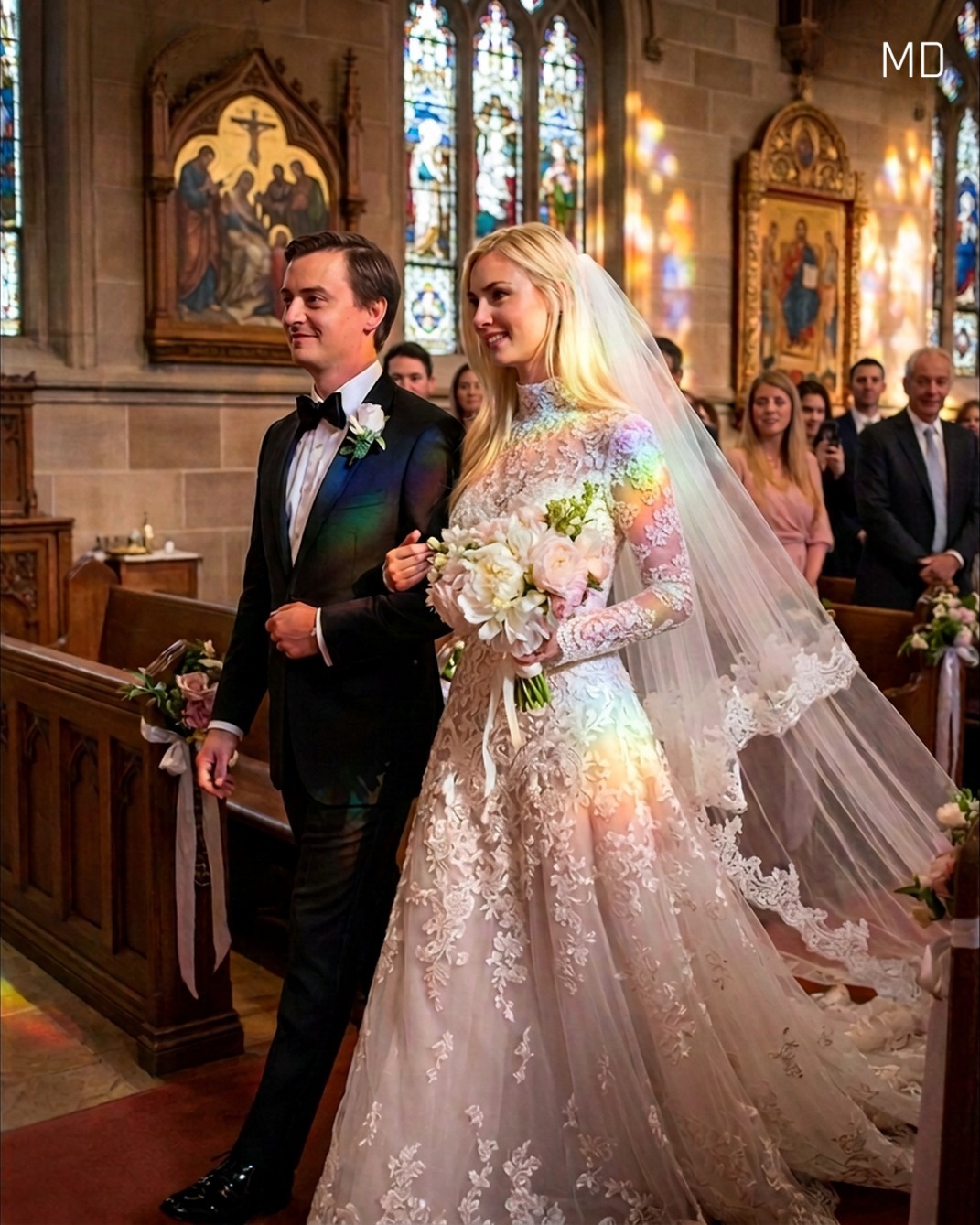 On the day of the ceremony, I arrived at the bridal suite to discover my wedding dress had disappeared. Moments later, the church doors opened and Lori walked down the aisle wearing it, proudly holding Nick’s arm. In front of nearly two hundred guests, she announced that they were the ones getting married instead. Gasps filled the room as everyone looked toward me, expecting a dramatic reaction. Instead, I calmly asked the technician to play a presentation. Screenshots of messages between Nick and Lori appeared on the large screen at the front of the church, revealing their secret plan and the betrayal behind it. The room quickly filled with shocked whispers as guests realized what had really happened.