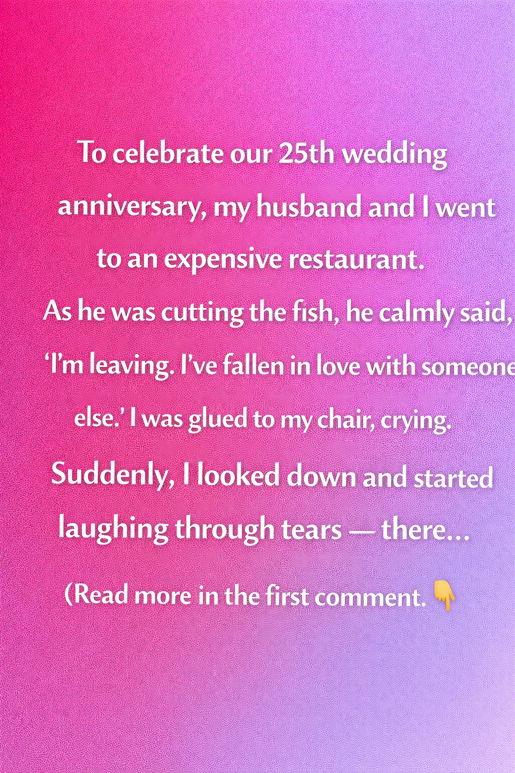 To celebrate our 25th wedding anniversary, my husband and I went to an expensive restaurant. It was the kind of place we had always saved for special occasions, with soft lighting, white tablecloths, and servers who spoke in calm, practiced voices. I remember thinking how strange it felt to mark such a long journey with something so quiet and polished. We talked about ordinary things—work, travel, memories from when the kids were small—and I let myself believe we were simply two people honoring the life we had built together. When the food arrived, I smiled at him across the table, unaware that the evening was about to split my life into a before and an after.
