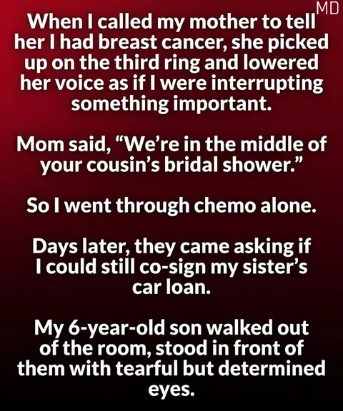 When my family finally reached out, it wasn’t to ask how I was doing. It was about a car loan—practical, urgent in their eyes, but distant from the reality I was living. Their request stung, not because of the money, but because it reminded me of the emotional distance that had quietly settled between us. I stood there, searching for the right words, trying to balance compassion with the boundaries I was only just beginning to understand. Before I could respond, a small figure stepped forward—my son, who had been watching more closely than I realized.
