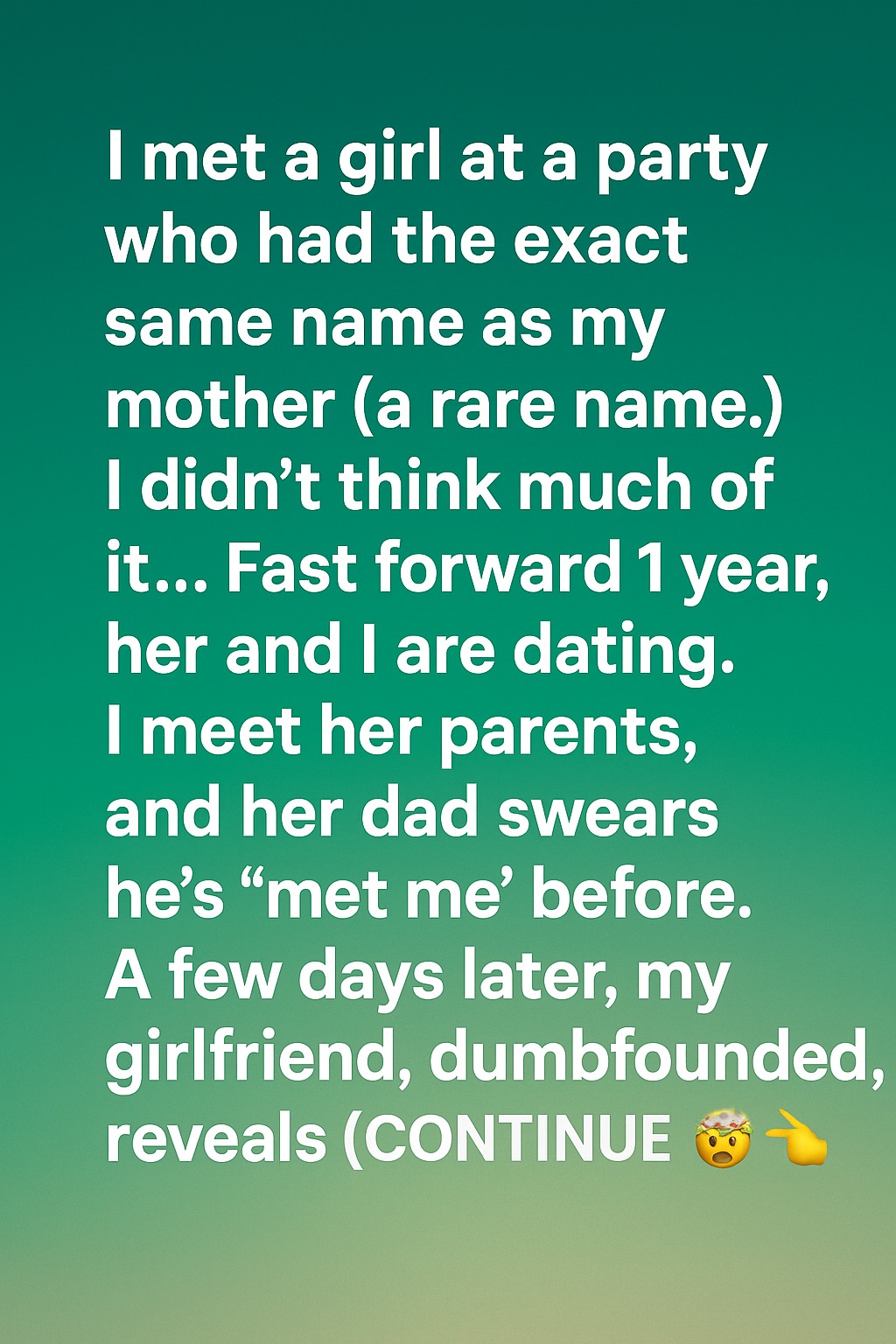 I met a girl at a party who had the exact same name as my mother (a rare name.) I didn’t think much of it… Fast forward 1 year, her and I are dating. I meet her parents, and her dad swears he’s “met me” before. A few days later, my girlfriend, dumbfounded, reveals…She reveals that her father had once attended a community storytelling event years ago where I, without knowing any of them, had stood on stage and shared a five-minute story about my late mother—her dreams, her strength, and the unusual name she carried with pride. He said he remembered me vividly because the name struck him so deeply; it was the same name he and his wife had given their daughter, inspired by an author they admired and a family friend they respected.